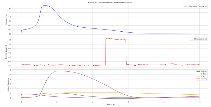 I have been working on trying to build some useful compute out of the Hodgkin and Huxley model for the human neurone. It is a bit of a deep dive to highlight the differences between the human brain and artificial neural networks and try and learn some things along the way.