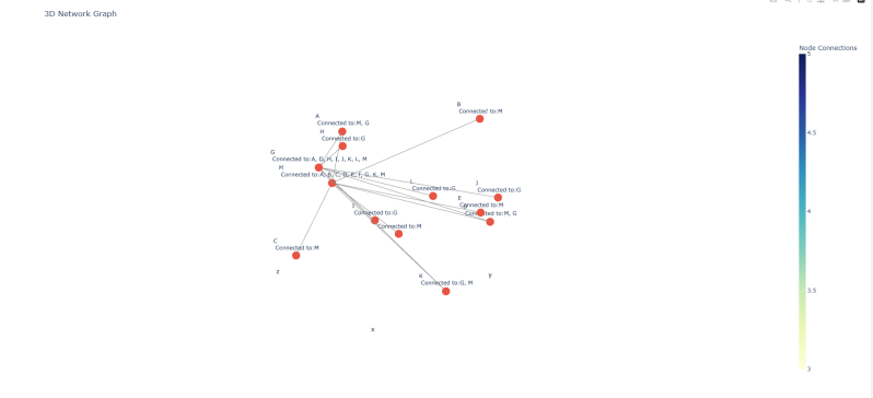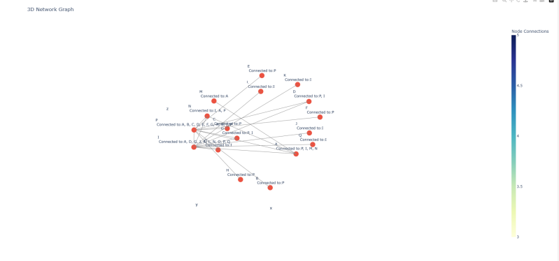 My theory is that the Neurones should self arrange themselves in firing patterns that encode timing behaviours. I have not decided on a test for this but let us see what patterns this process will create. I used python libraries Networkx and plotly to create 3d graphs of the way the networks formed